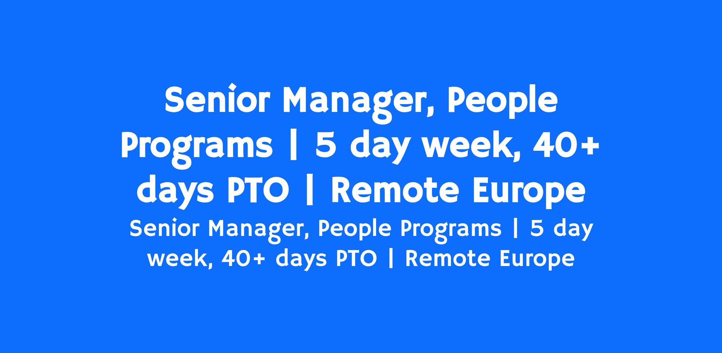 The Senior Manager, People Programs will lead the development and delivery of our core People Programs working with your team of People Experience Generalists and Specialists to deliver programs in line with our company goals. You will oversee our employee experience, strategic programs, people data insights, and performance programs. Additionally, you will champion best practices and collaborate with the wider People team, Finance, Legal and other partners across the company to refine and develop the employee experience.
