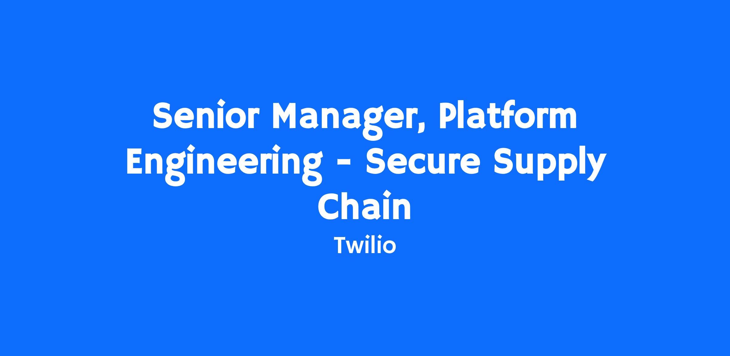 Join the team as Twilio’s next Senior Manager, Platform Engineering - Secure Supply Chain.
