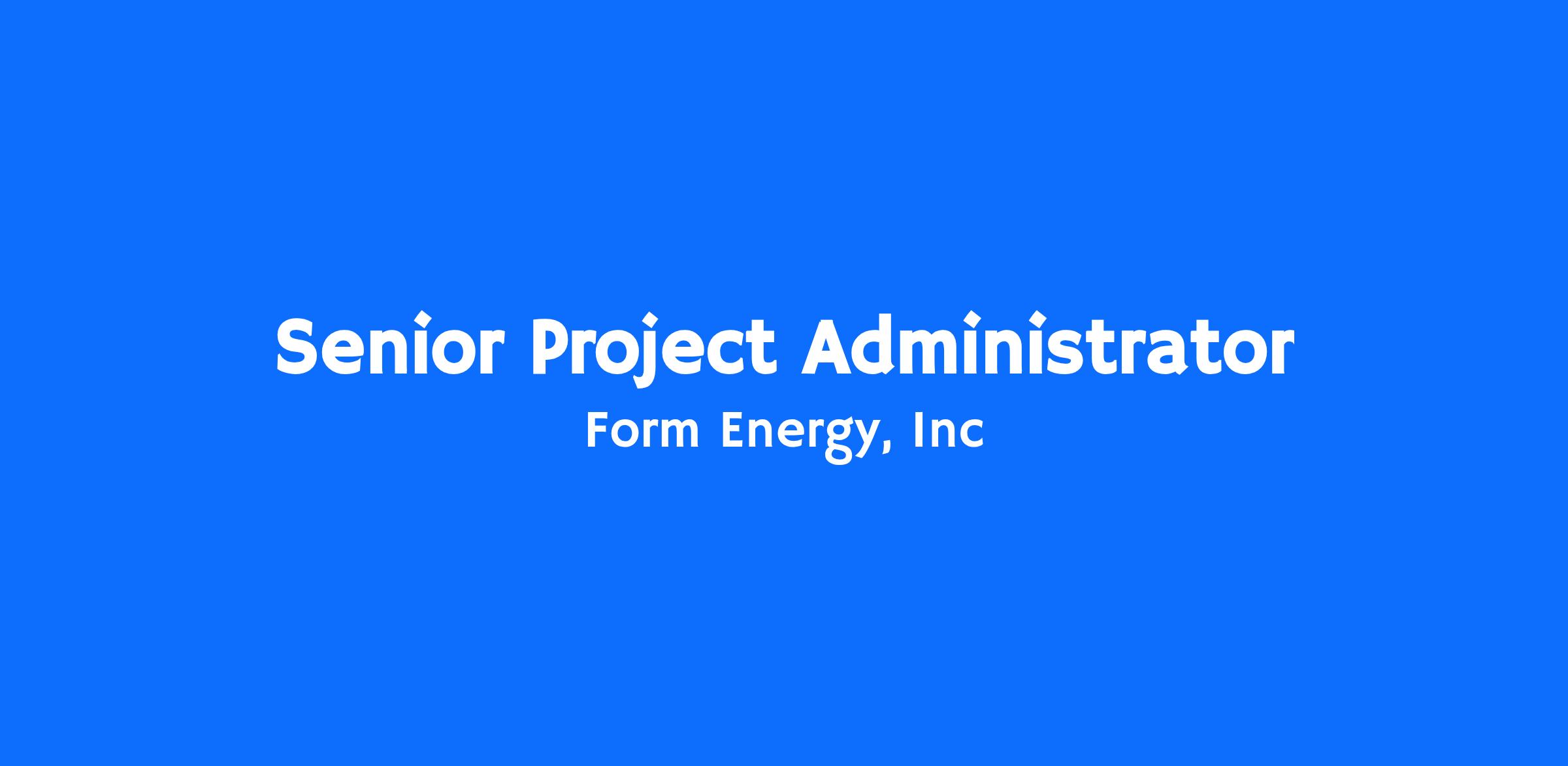 Form Energy is hiring a Senior Project Administrator to support the deployment of our commercial projects.This role reports into our Project Engineering team which is part of the Commercial Operations organization. The Project Engineering team is instrumental in designing, building, commissioning, and operating utility-scale storage projects and will be invaluable in scaling Form’s breakthrough multi-day storage technology. You will work closely with EPC partners and customers externally and with Finance, Accounting, Manufacturing, Quality, and Logistics internally. This is an exciting opportunity to help shape the growth of a fast-moving company with breakthrough technology and an incredible mission!