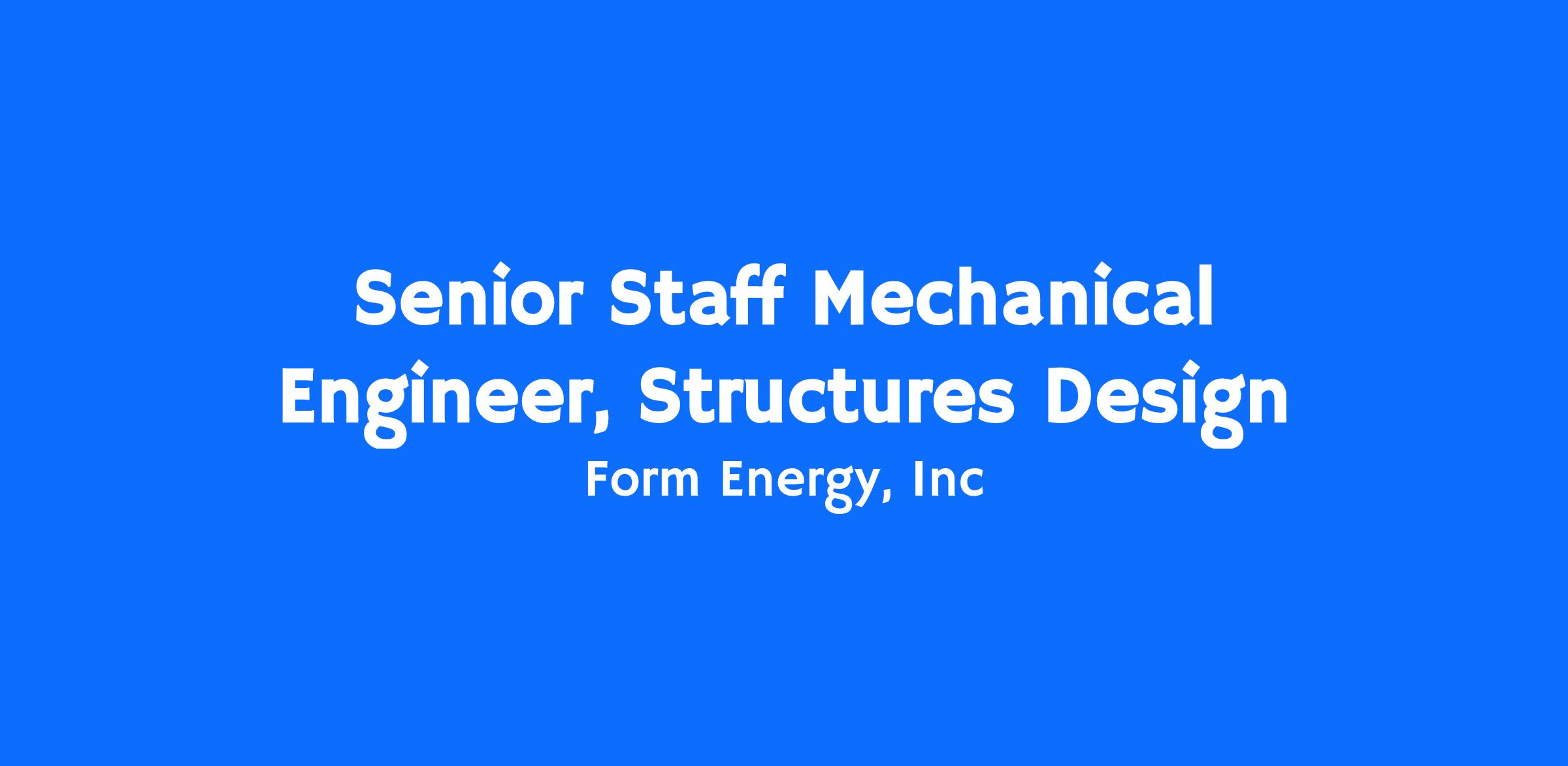 We're seeking a Senior Staff Mechanical Design Engineer to join our team and lead design efforts. You'll bring components and assemblies from concept to into mass production, with a strong emphasis on structural design, weatherproofing, and manufacturability of metal enclosures. As a problem solver, you'll creatively tackle mechanical design challenges and apply your design knowledge of sheet metal, weldments, plastics, and sealing systems for mass production. You'll work cross-functionally with teams on requirements definition, verification plans, and failure analysis to deliver a design that meets those requirements. Troubleshooting design problems as they arise and working to implement improvements will also be a part of your responsibilities. This is an exciting opportunity to be part of scaling our multi-day energy storage system at Form and contributing to a sustainable future. If this sounds like the perfect opportunity for you, apply now!