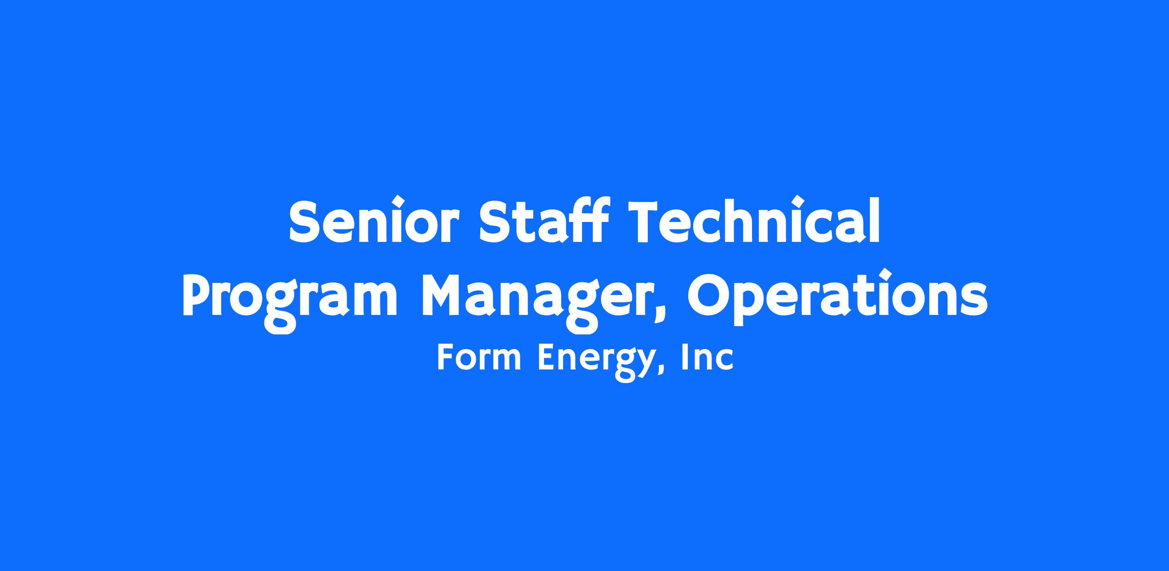 Form Energy is pioneering a new class of battery technology to transform the grid. We are seeking a Senior Staff Program Manager to lead the scaling of our iron-air battery production from early concept through high-volume production. In this role you will leverage your technical depth in new product introduction (NPI) and manufacturing to set the strategic direction for equipment design, process qualification, and scaling up our manufacturing systems. You will lead and develop a team of three Technical Program Managers while setting the execution cadence, operating mechanisms, and decision frameworks that enable scalable, repeatable manufacturing. This is a chance to have a direct, hands-on impact on scaling up revolutionary, multi-day energy storage technology.