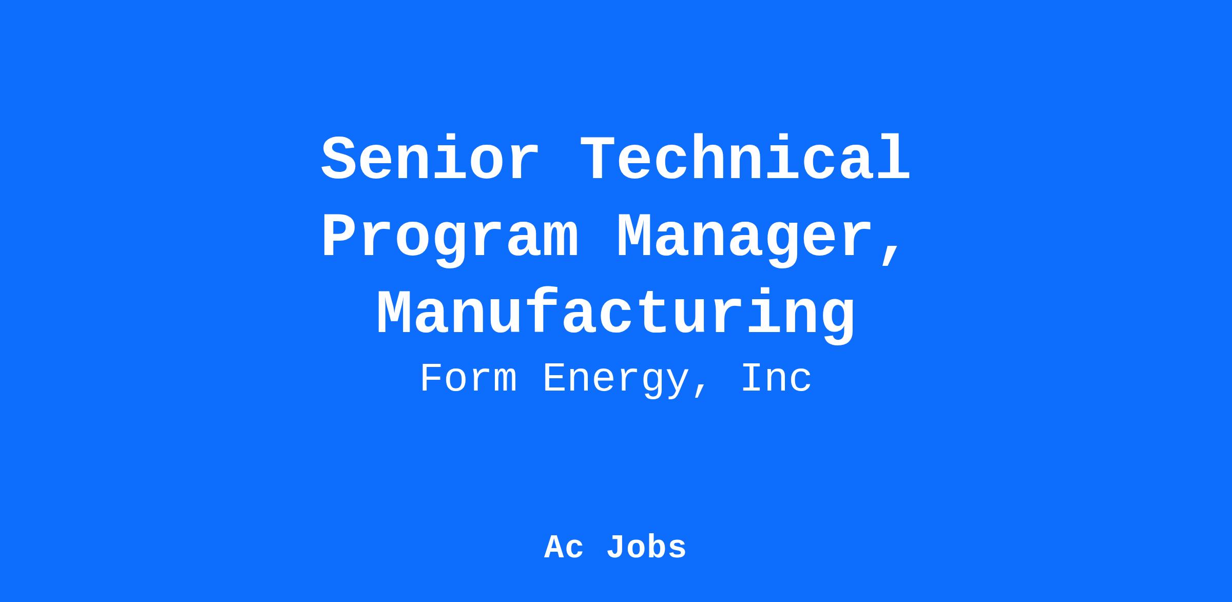 Form Energy is hiring a Senior Engineering Program Manager to take on a pivotal role in developing the strategy and driving execution of our first in-kind battery development and manufacturing programs. As part of the PMO (Program Management Office), you will bring the cross functional teams together and execute on the plan to transition the product from development to prototype then commercial manufacturing. This is an exciting opportunity to help shape and be part of the growth of a fast-moving company with breakthrough technology and an incredible mission!
