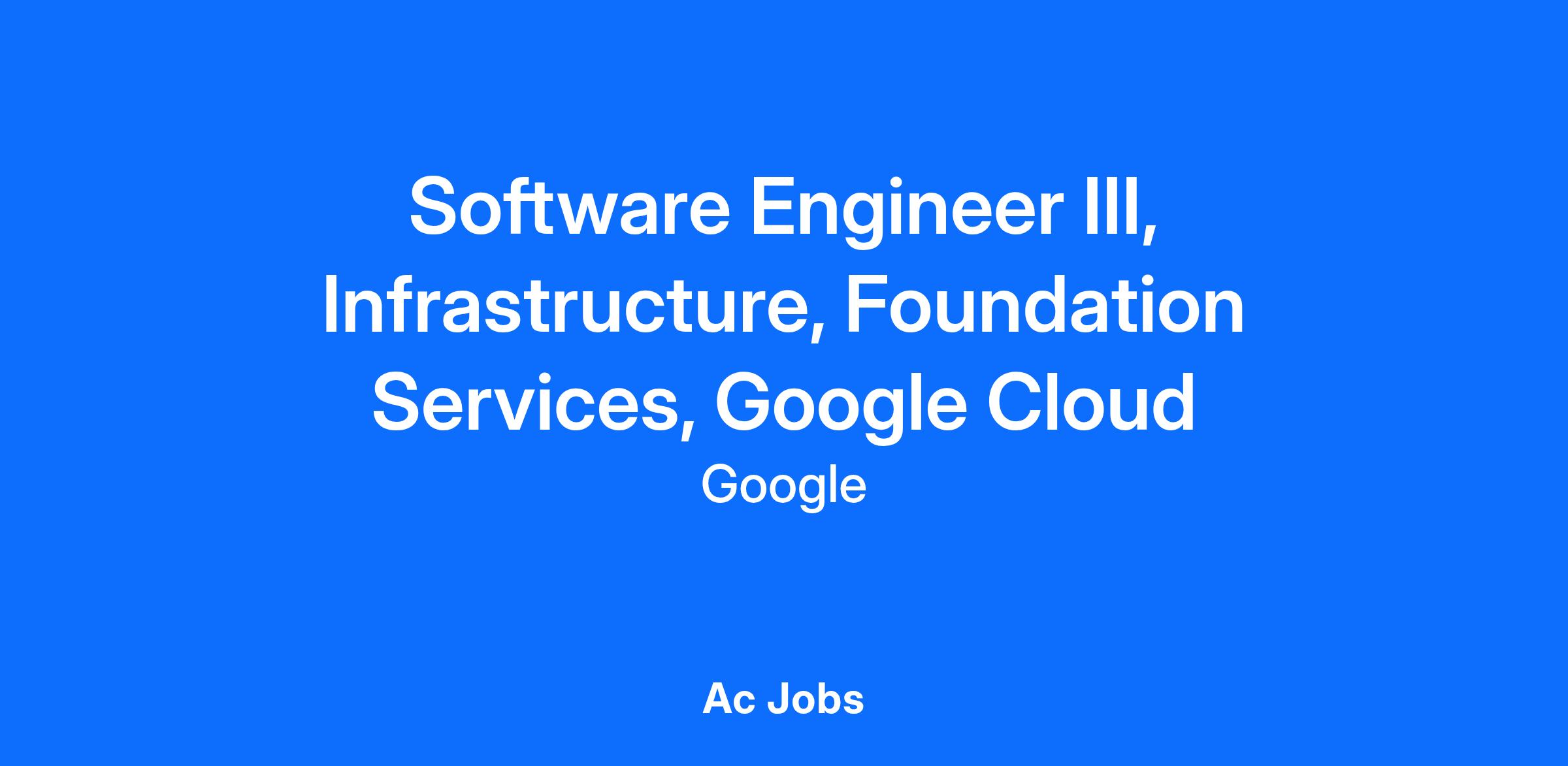 Software Engineer III, Infrastructure, Foundation Services, Google Cloud