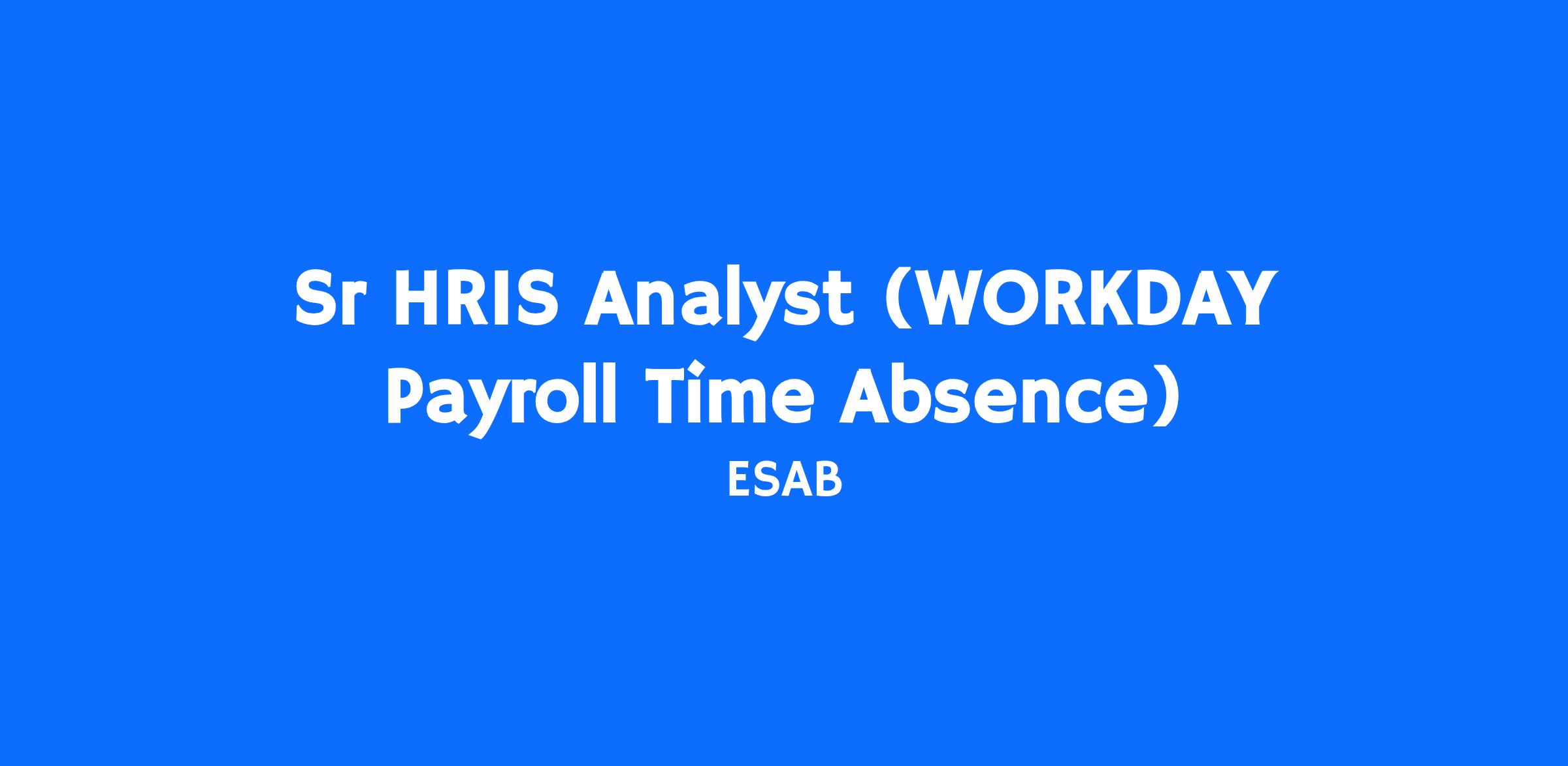 ESAB is seeking a Sr HRIS Analyst to own and manage the Workday modules for Payroll, Time & Absence. This role is responsible for analyzing complex business problems to be solved with automated systems. Provides technical expertise in identifying, evaluating and developing systems and procedures that are cost effective and meet user requirements. Configures Workday system settings and options; plans and executes unit, integration and acceptance testing; and creates specifications for systems to meet business requirements.