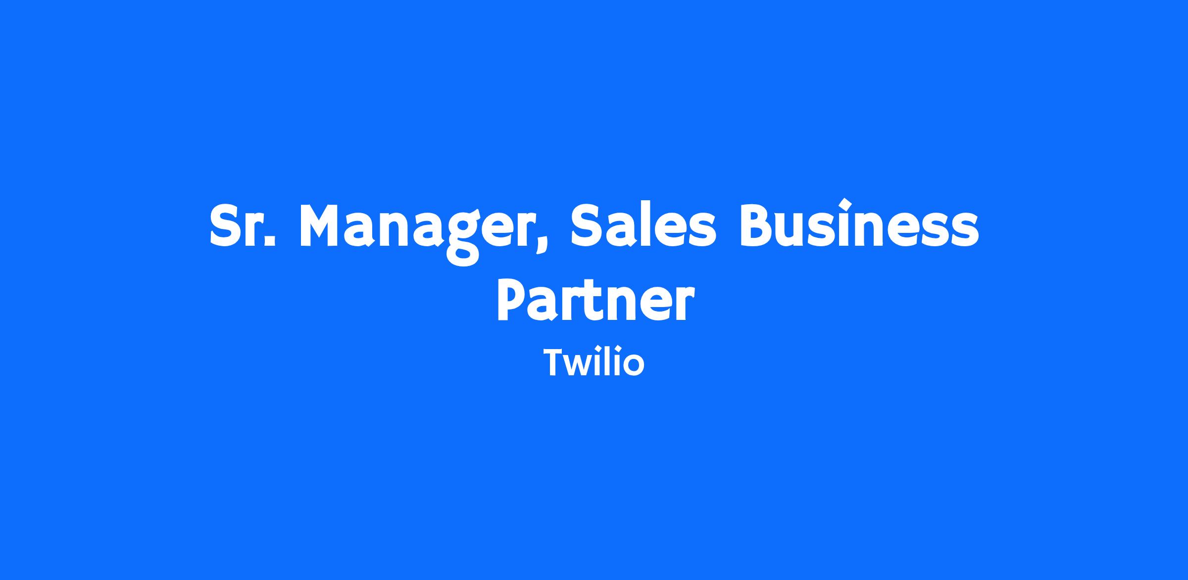 Join the team as Twilio’s next Sr. Manager, Sales Business Partner.