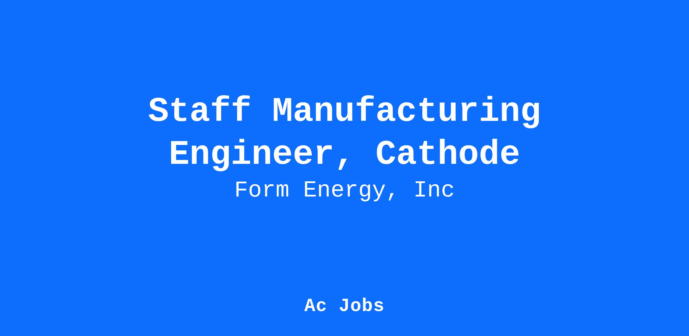 Form Energy is hiring a Staff Manufacturing Engineer to join our world-class engineering team. Our team is responsible for developing and scaling the automation systems that enable efficient, reliable, and high-quality manufacturing of Form Energy’s Iron-Air multi-day battery.
