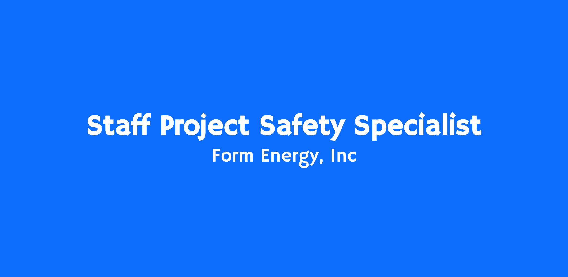 Form Energy is hiring a Project Safety Specialist to develop, implement, and manage robust safety programs for our battery storage deployment projects. This role reports into our Project Engineering team, which is part of the Commercial Operations organization. You will ensure site-specific safety compliance, lead training, and manage emergency response protocols in collaboration/partnership with project execution teams, field operations, internal EHS and customer environmental compliance teams. This is an exciting opportunity to help shape and be part of the growth of a fast-moving company with breakthrough technology and an incredible mission!