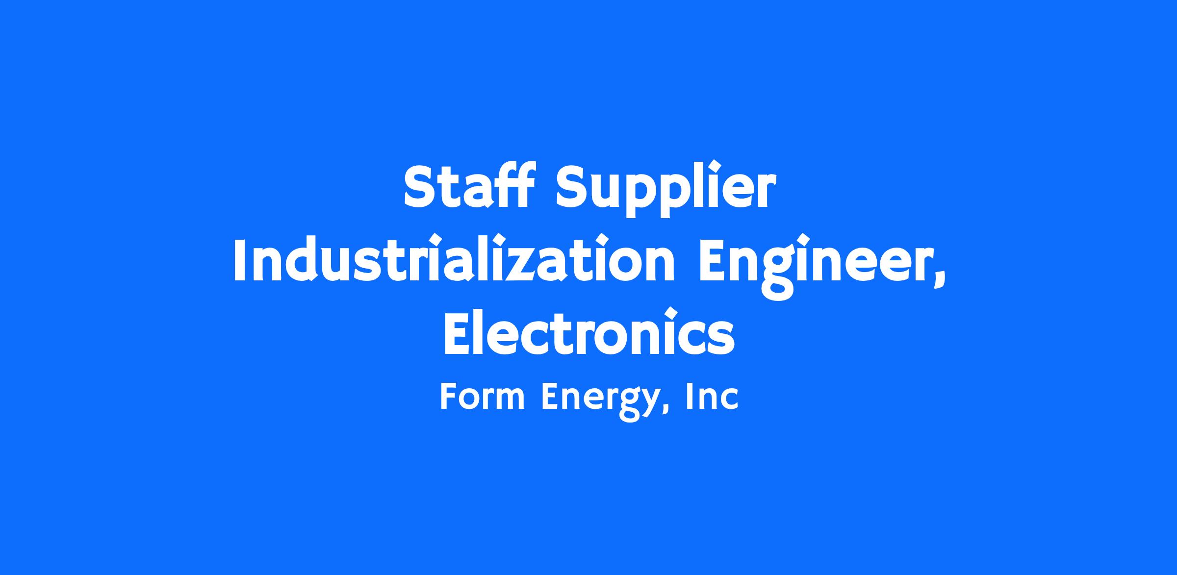 Form Energy is hiring a Staff Supplier Industrialization Engineer, Electronics to serve as the definitive technical and quality authority for our contract-manufactured (CM) custom electronics including PCBAs, electronic box builds, and high-power harness assemblies. Reporting to the Global Supply Management team, you will own the end-to-end industrialization lifecycle, from early-stage DFM and supplier selection through mass production and "cradle-to-grave" quality accountability. As a Staff level engineer, you will architect the quality frameworks—including PPAP and APQP—necessary to ensure our electronics partners scale with world-class reliability.