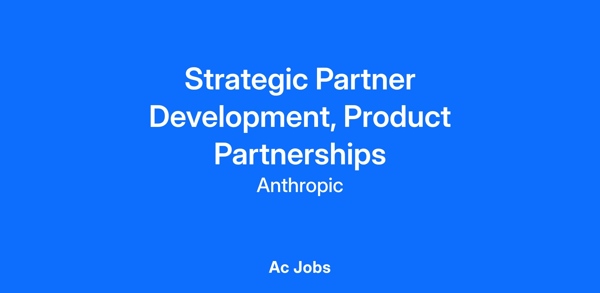 We are looking for a Strategic Partner Development, Product Partnerships, to manage our product partnerships and integrations with a wide range of content providers, improving Anthropic’s products. In this role, you will be responsible for prospecting, researching, negotiating, and closing deals with a wide variety of content providers necessary to build and maintain Anthropic’s product portfolio. A background in product partnerships at a major tech company will be very beneficial in this role, as is comfort in working at a fast-paced start-up environment.