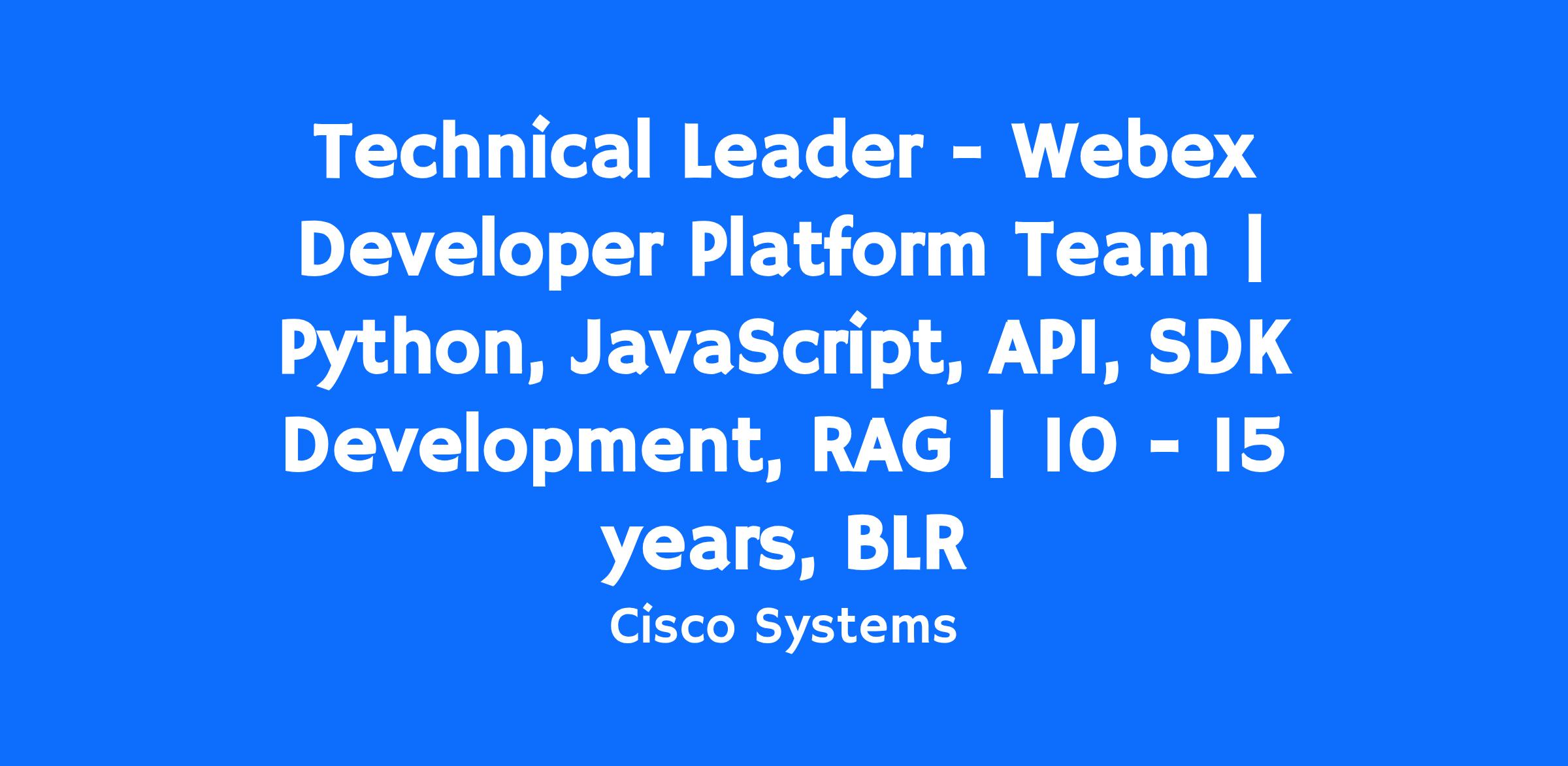 We are seeking a Technical Leader to join our Webex Developer Platform team, a pivotal role that will shape the future of collaboration technology. This position focuses on empowering developers and partners to harness the full potential of Webex capabilities through innovative AI-powered solutions. The ideal candidate will be a visionary leader with a robust technical background, capable of designing and implementing advanced systems that enhance collaboration and optimize employee collaboration and customer-agent interactions.