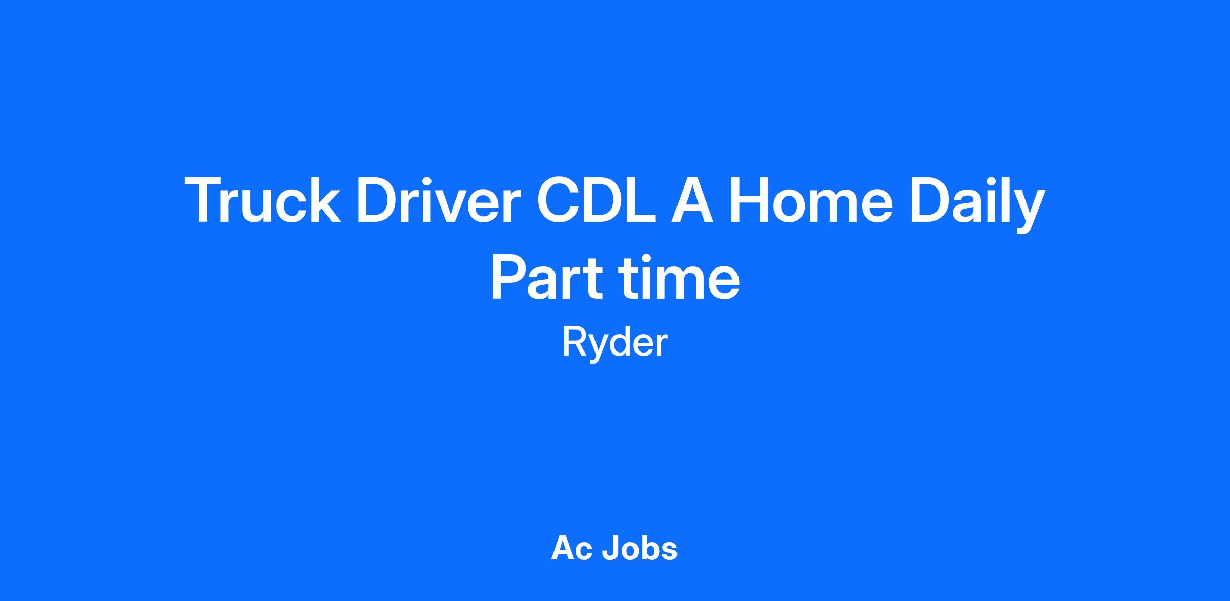 Immediate opening for a Class A CDL Truck Driver Casual Part time and we want the right Driver to join us at Ryder in Glen Burnie, MD